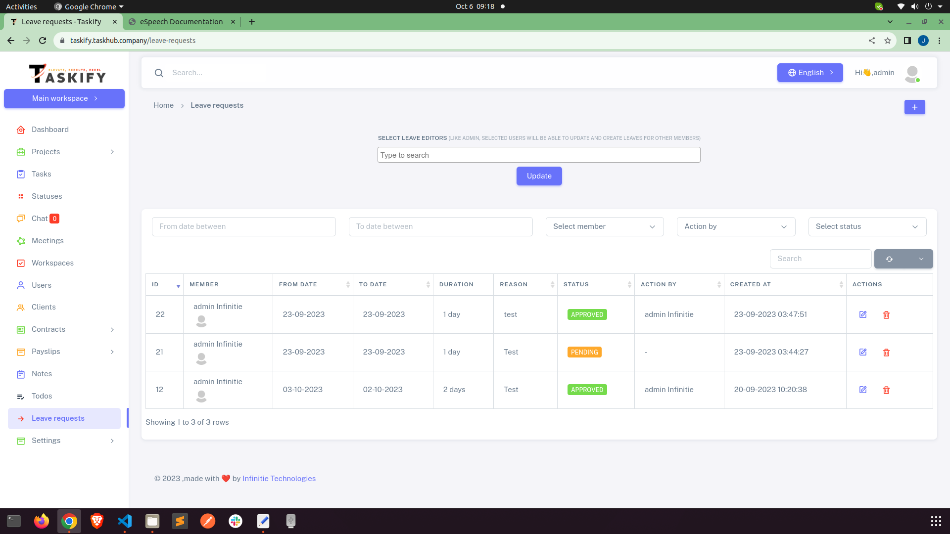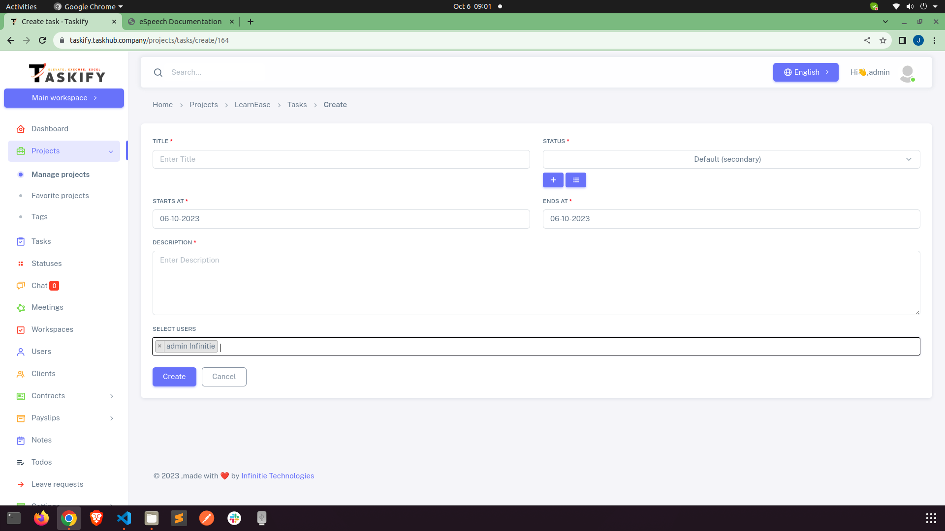 This is the page where you can create, update, delete tasks of the project and assing them to