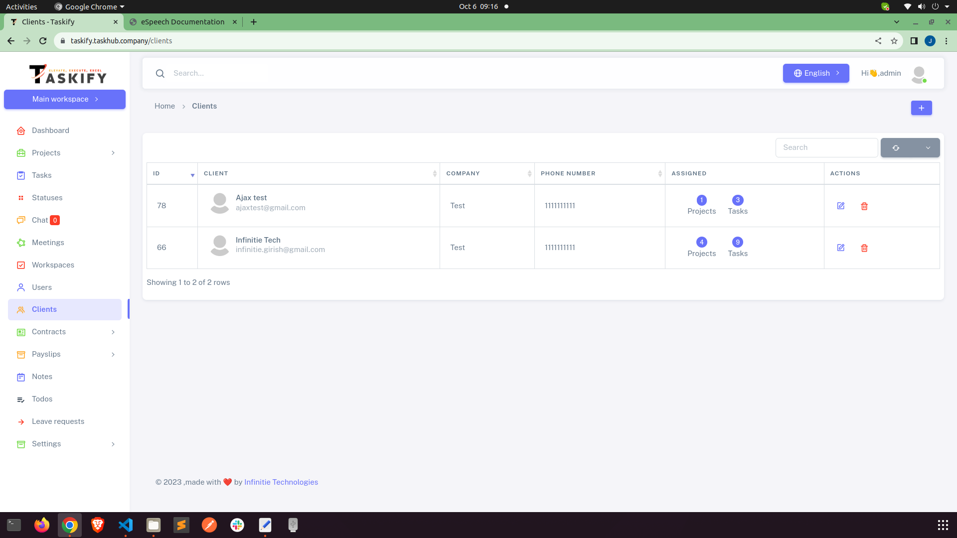 Here you can Add, View, Edit & Delete Clients from worspace.