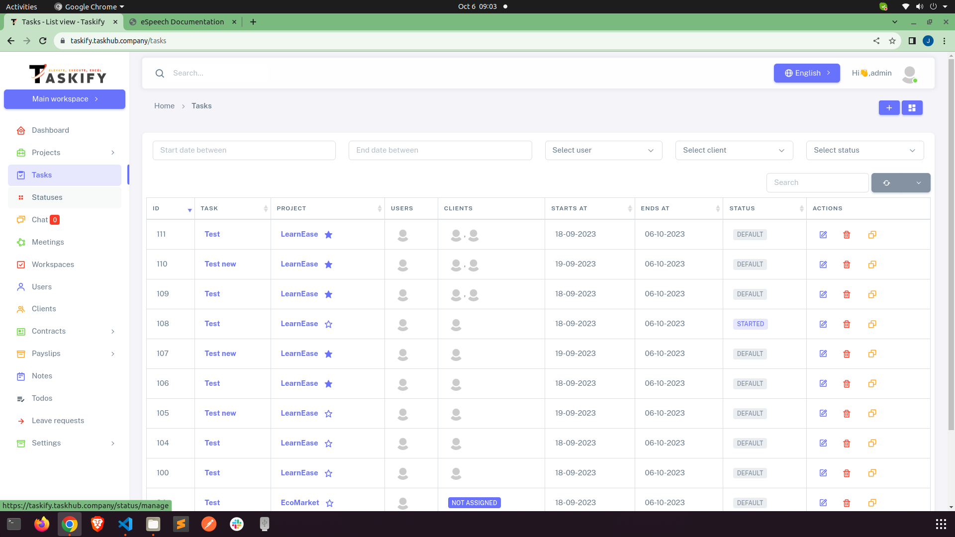 This is the page where you can create, update, delete tasks of the project and assing them to